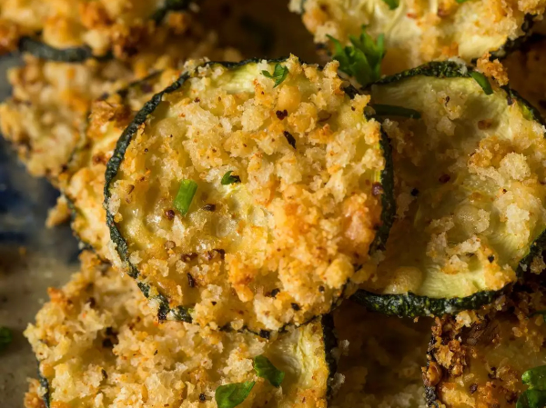 - Arrume as tiras de abobrinha na assadeira untada com azeite em uma única camada.
