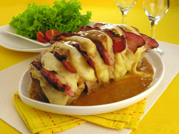 Lagarto recheado com molho três queijos
