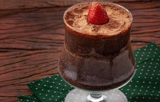 - Disponha o conteúdo em uma taça e despeje a farofa de biscoito que sobrou por cima.