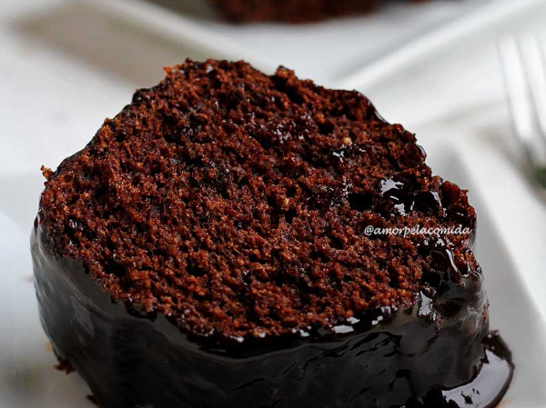 Bolo de chocolate sem glúten com calda de mel