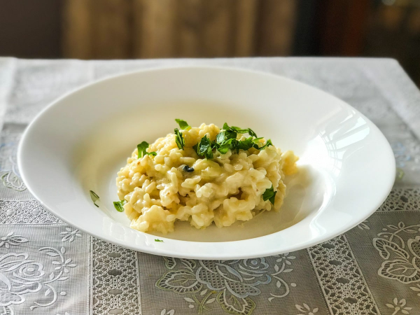 - Depois, adicione o caldo de legumes aos poucos, mexendo sempre, até o arroz ficar al dente.