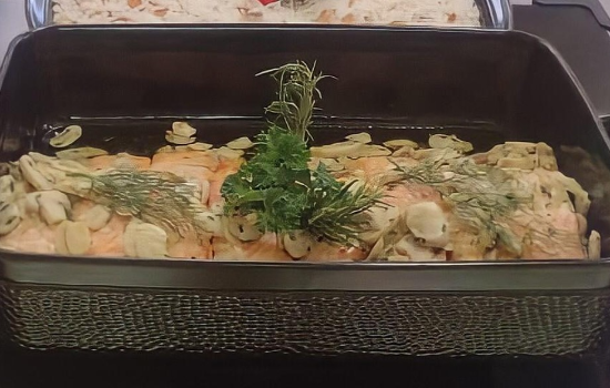 O preparo do peixe é bem simples e combina com várias ocasiões. A receita de salmão ao forno é simples de ser feita e ganha um sabor especial com o molho de champignon. É um prato leve, que pode ser acompanhado por arroz de amêndoas e pupunha salteada na manteiga e ervas.